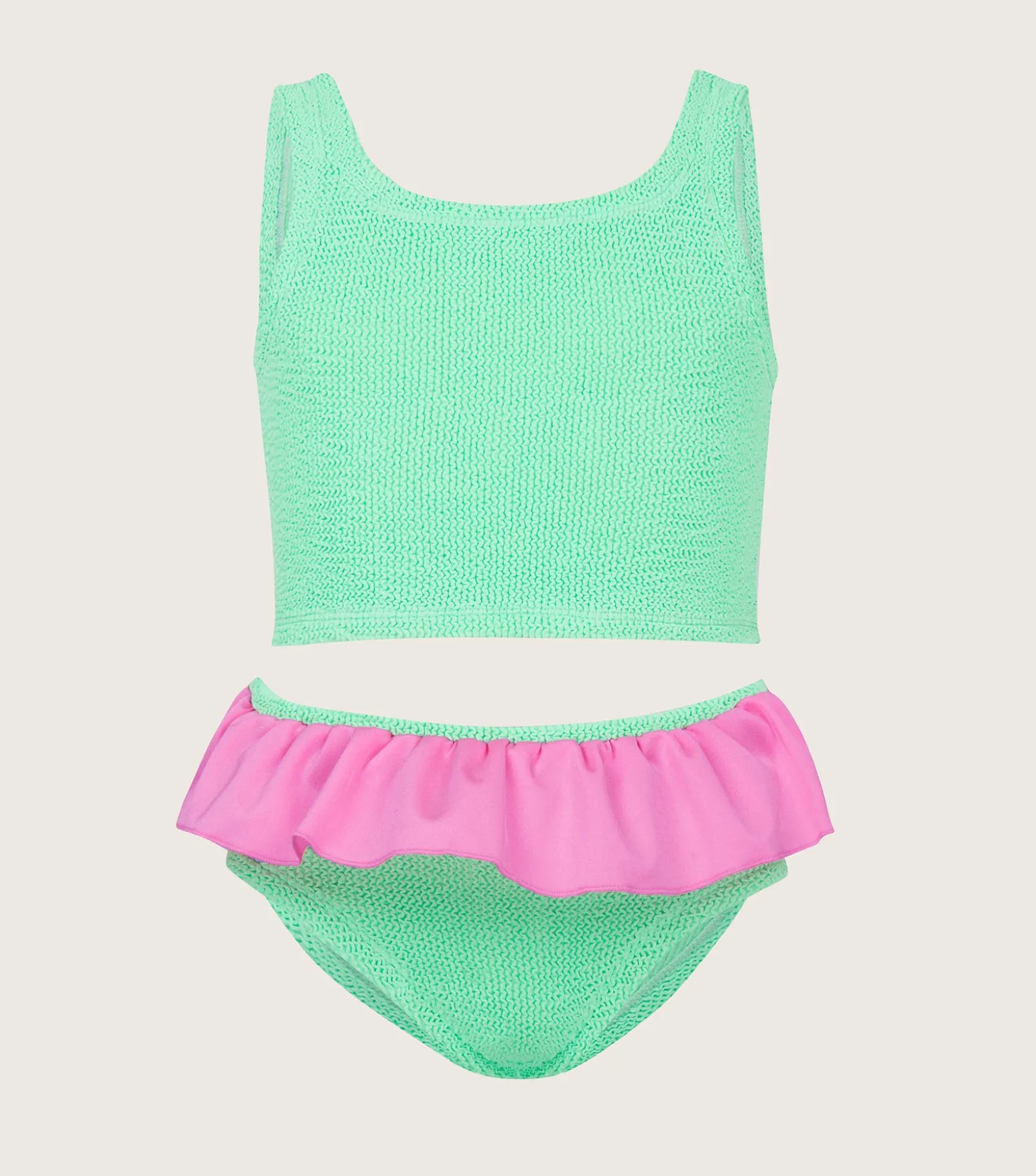 Two colours, twice the fun. Our signature stretch crinkle has never been more charming.Lighter colours may appear translucent when wet.Neon colours may fade over time. This is not a manufacturing defect.