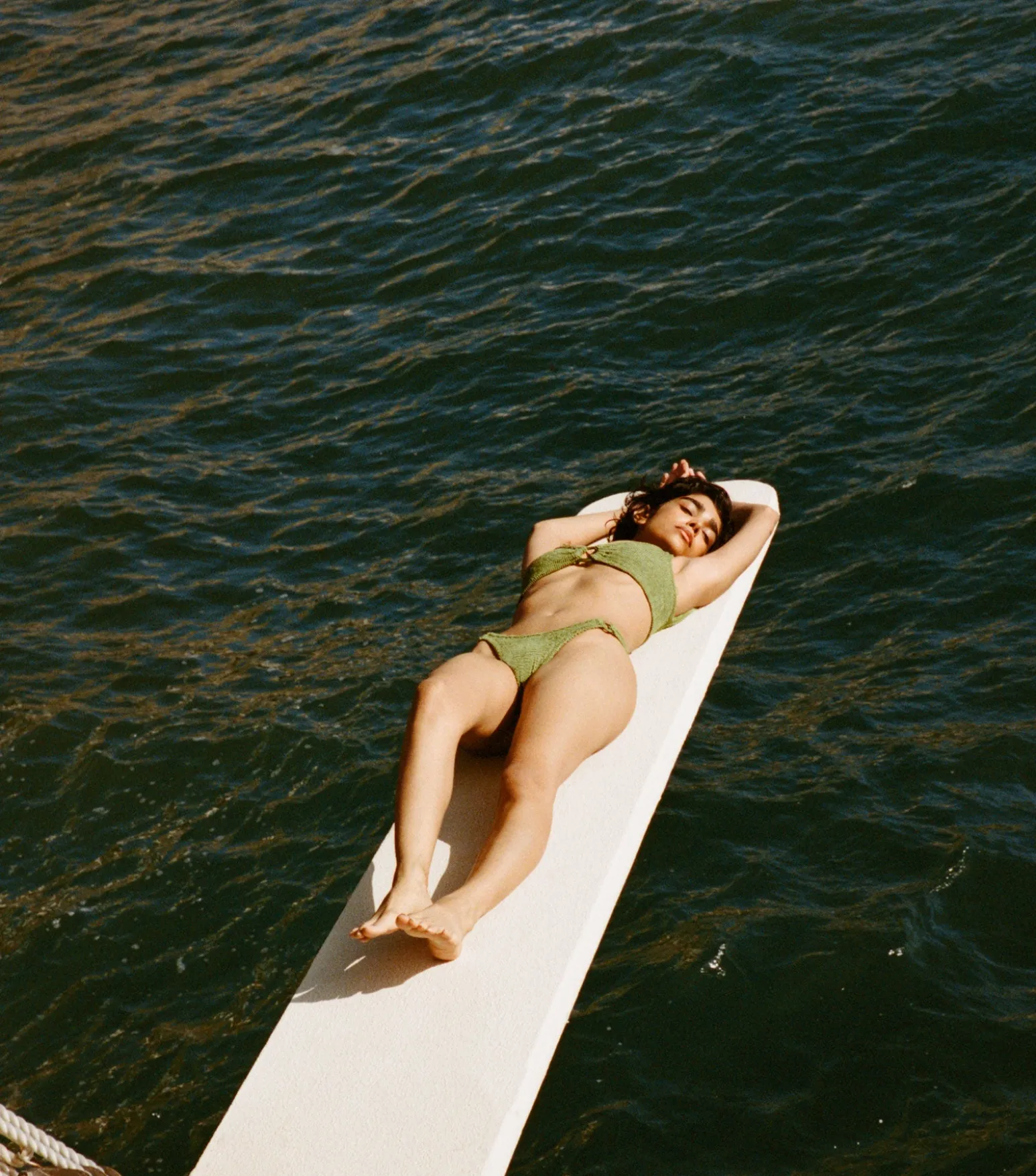 Hunza G Bikini Sets|Bralette-Hallie Bikini – Metallic Moss